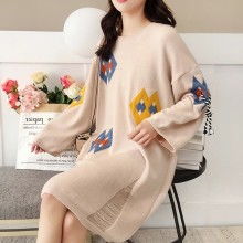 嵐山湖 春秋新款氣質圓領條紋包臀長款顯瘦毛衣裙 2011 82d